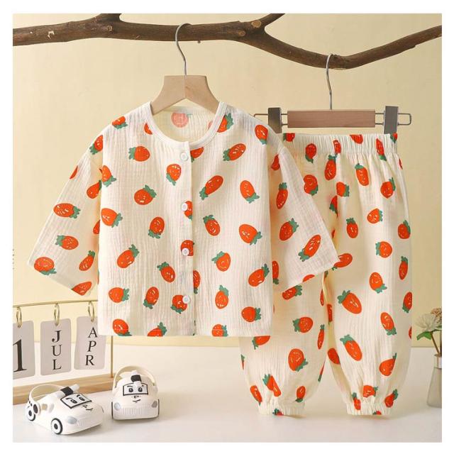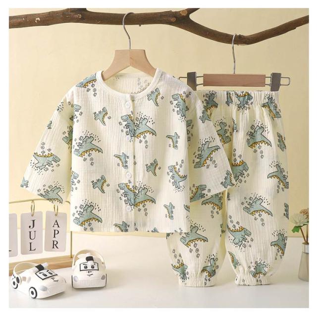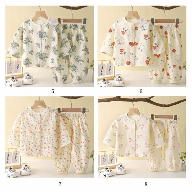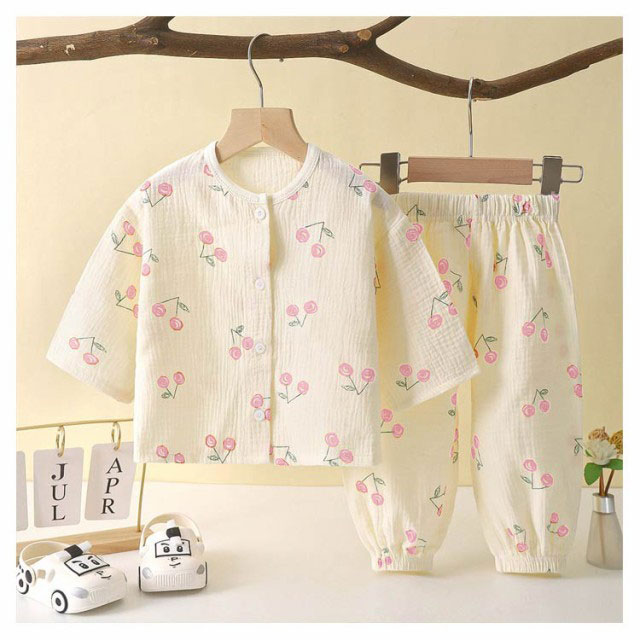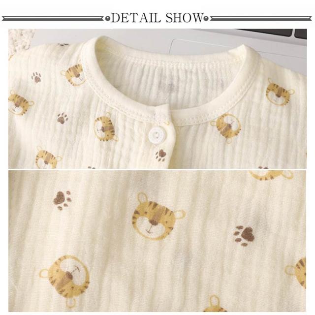 | 【ダブルガーゼパジャマ】【80〜150cm】 ふんわりとしたダブルガーゼ素材が肌に心地良い、お子様向けルームウェア。 ガーゼを2層に重ねることで、ふんわり空気を含み、寒い時は保温性を発揮し、暑い時は汗を素早く吸収しさらさら。 長袖なので、春・秋はもちろん、夏のエアコンが効いた部屋でも活躍します。 | |
