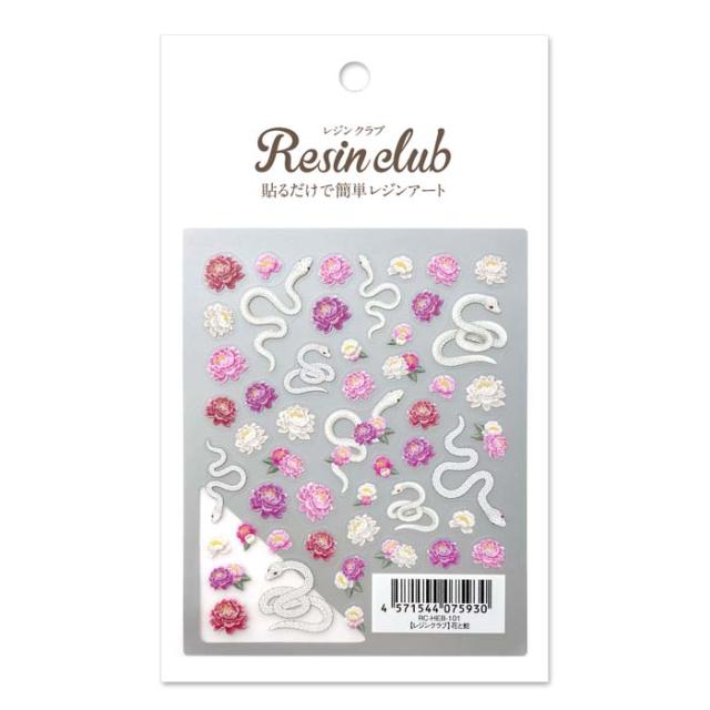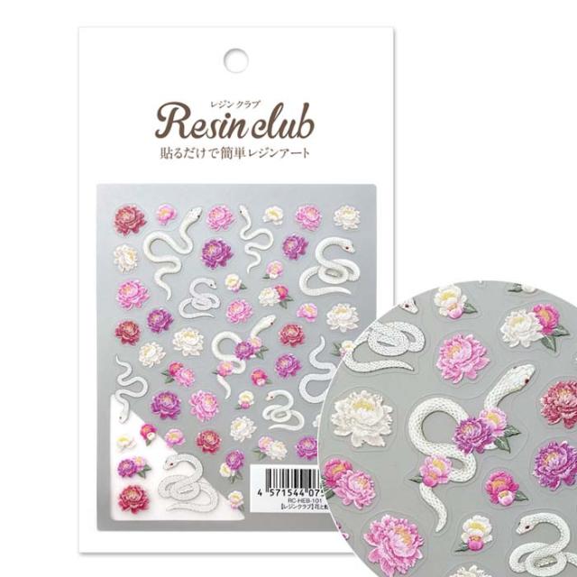 レジンクラブ レジンシール 花と蛇 (両面印刷) RC-HEB-101 白蛇 ぼたん 牡丹 和 縁起 神様 開運 封入 薄い しなやか 高品質 送料無料(普通郵便)