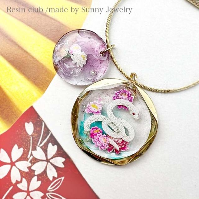 | 幸運を呼ぶ白蛇と富の象徴である牡丹のコラボレーション。2025年は巳年。縁起の良いモチーフで干支のアクセサリーを作ってみませんか。 |