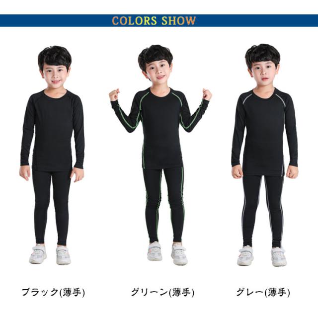 春 秋冬 子供用 男の子 アンダーウェア コンプレッションウェア 裏起毛/薄型 インナーシャツ レギンス スポーツ インナーウェア 長袖 タイツ スパッツ 女の子 バスケットボール 吸汗速乾 ランニング 上下セット サッカー キッズ