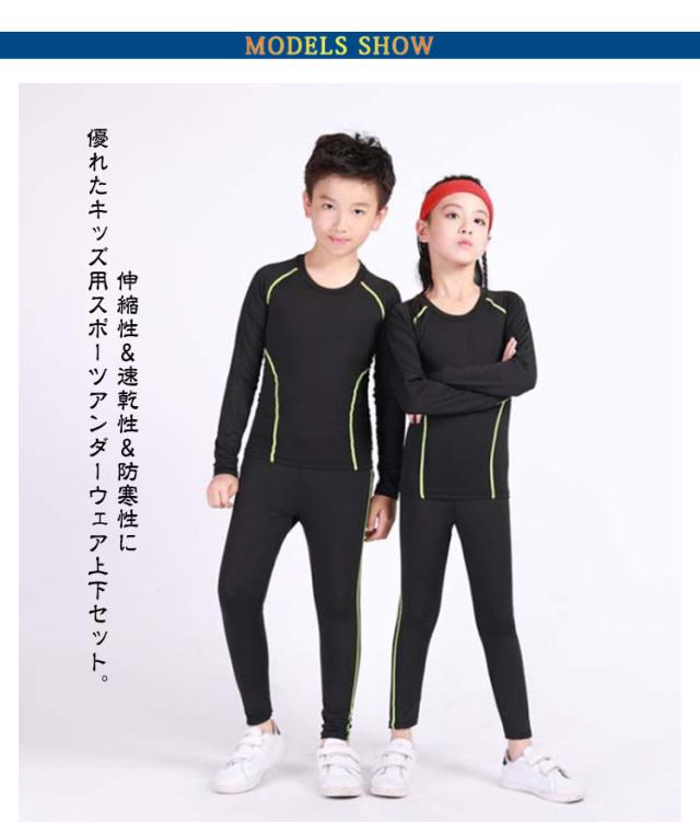 | 【上下セット】【裏起毛/薄型】【110〜170cm】【吸汗速乾】 伸縮性&速乾性&防寒性に優れたキッズ用スポーツアンダーウェア上下セット。 裏起毛と吸湿発熱素材で暖かさを維持して冷えから体を守ます。 着心地よく、動きやすい伸縮性の高い生地を採用し、締め付けないので初めてのコンプレッションウェアをきるお子様に最適です。 ドライな着心地で不快感から開放し、集中力をアップさせ、パフォーマンスを引き出します。 縫い目をフラットに縫製することで快適な肌触りを実現します。 薄手/裏起毛タイプはオールシーズンに対応し、冬場でインナーとして使えば防寒対策にもなります。 ランニング・トレーニング・野球・サイクリング・サッカー・スキー・スノーボードなど、様々なスポーツシーンでご活用いただけます。 | |