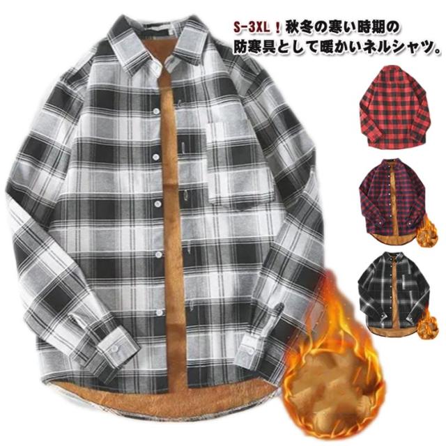 メンズ チェックシャツ ネルシャツ 送料無料 厚手 男女兼用 チェック柄 裏起毛 長袖 シャツ シャツ 長袖シャツ 極暖 防寒 秋冬 カジュアルシャツ 裏ボア シャツジャケット スリム アウター メンズファッション シニア カジュアル 送料無料 細身 暖かい 通学 通勤
