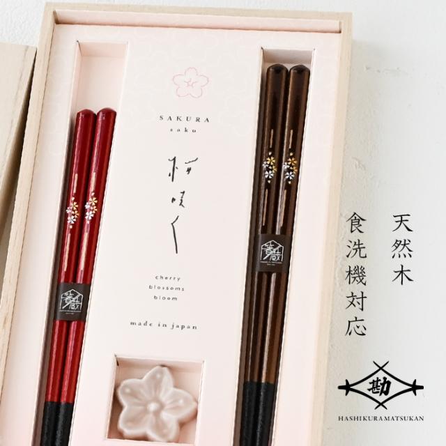 若狭塗 夫婦箸 さくらさく 桜華ペア 落雁箸置付 S-12190 ペア ペア箸 塗り箸 食洗機対応 敬老の日 母の日 父の日 プレゼント