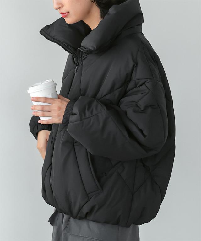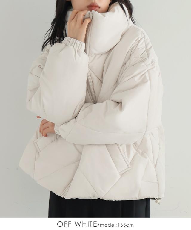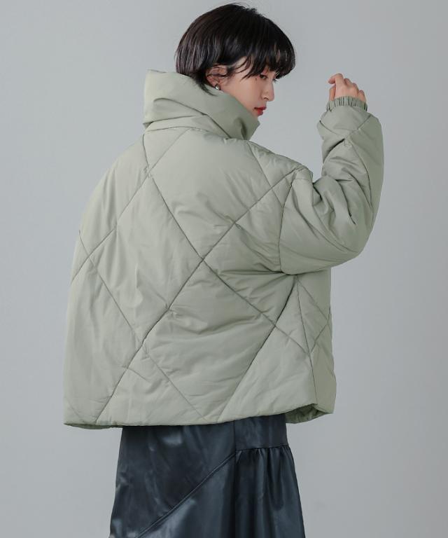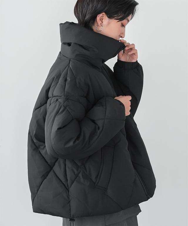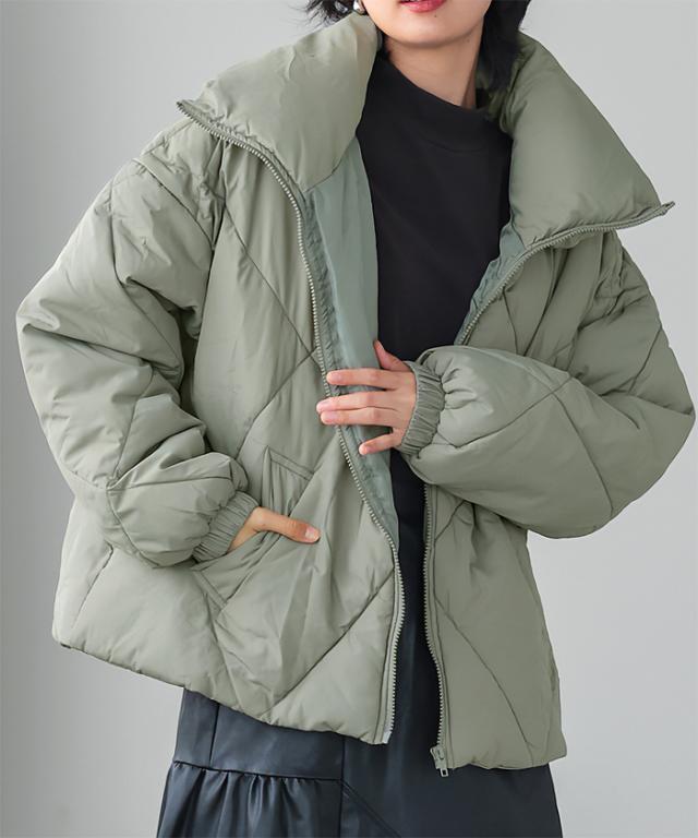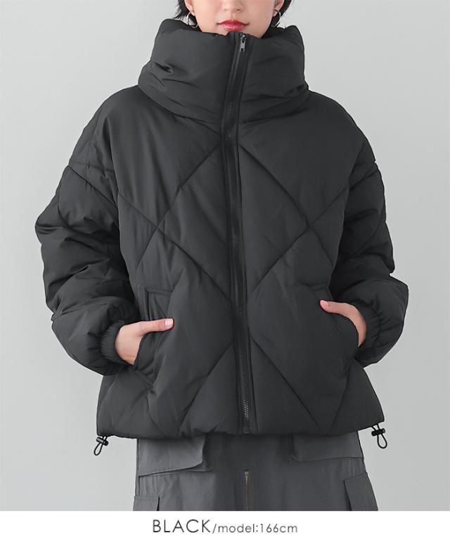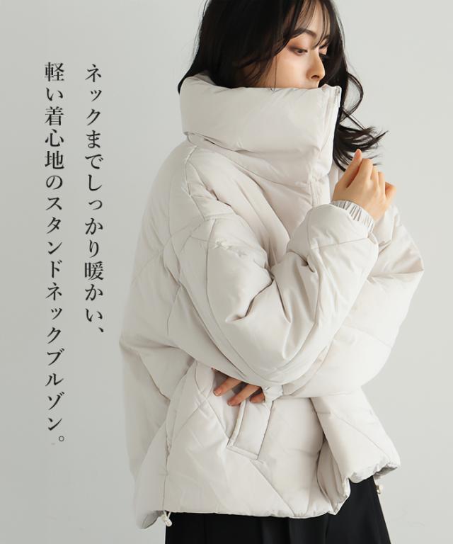 ダイヤキルトBIGカラーブルゾン レディース アウター ショート丈 スタンドカラー ダウン コート キルト キルティング ドロスト ゆったり 大きいサイズ 冬新作【メール便不可】