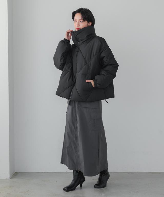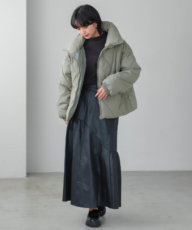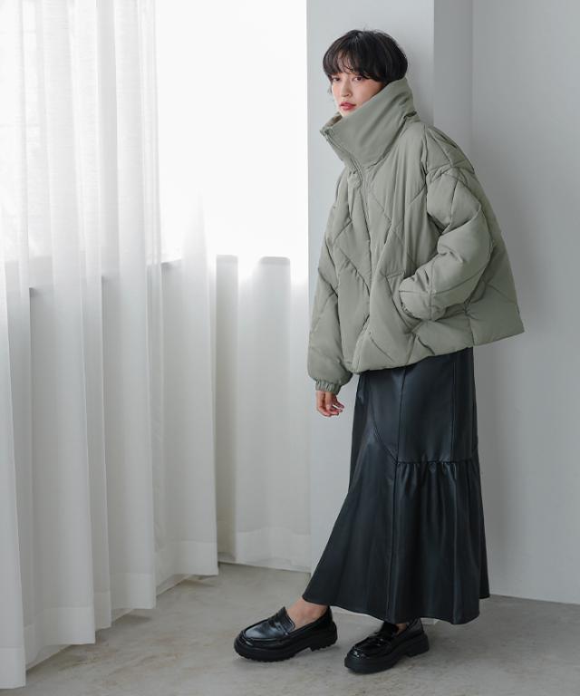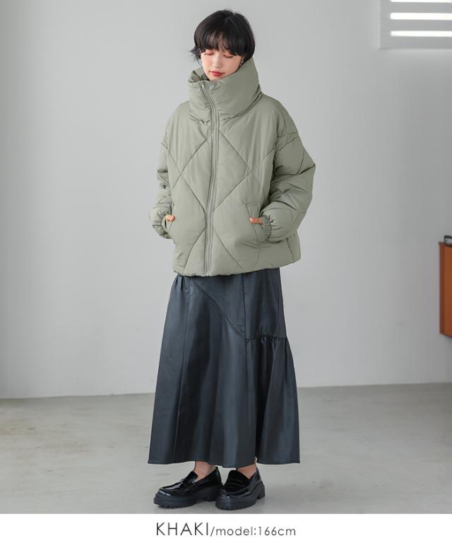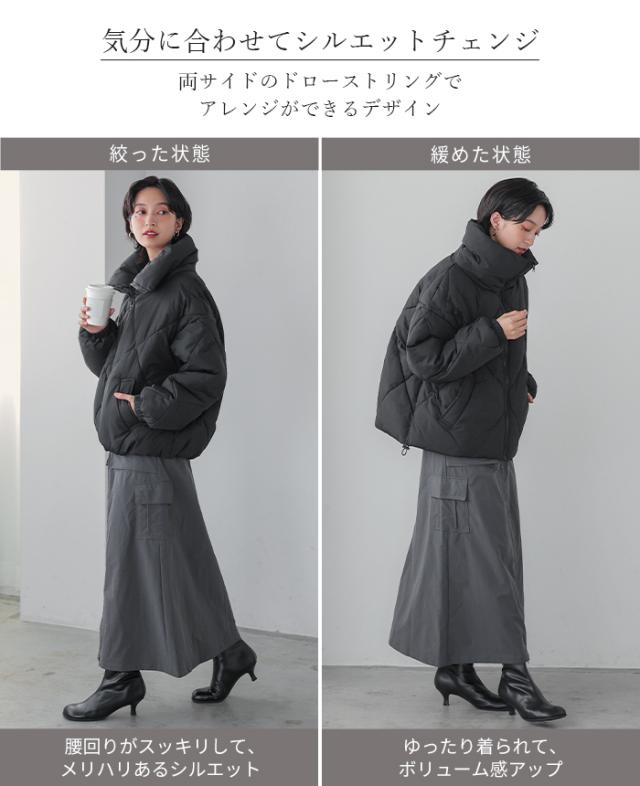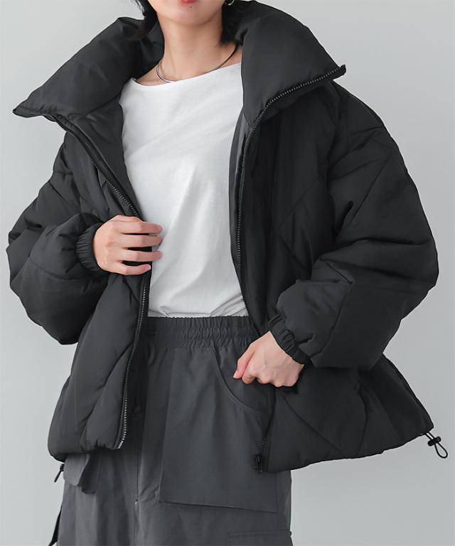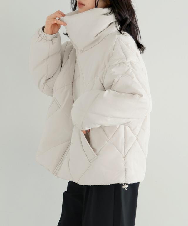 ダイヤキルトBIGカラーブルゾン レディース アウター ショート丈 スタンドカラー ダウン コート キルト キルティング ドロスト ゆったり 大きいサイズ 冬新作【メール便不可】
