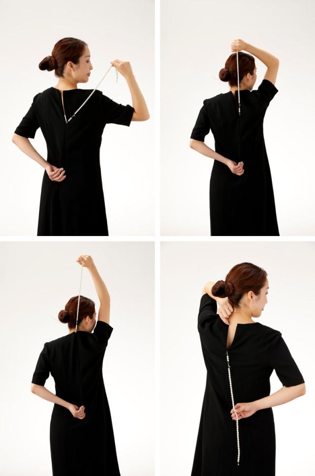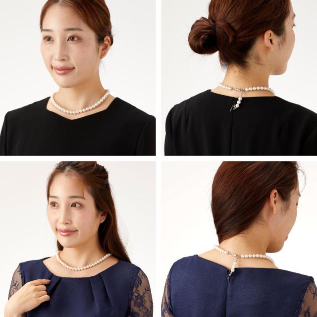 後ろファスナーのお悩みを解消するパールネックレス