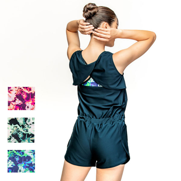 レジャーにもちょっとしたトレーニングにもおすすめの水着。トップスはフィット感のよいブラトップが付属しており、見た目はリラックスシルエットを保ちつつ運動しやすさをプラス。ボトムスは「2in1」パンツ仕様でピタッとせず、ふんわりした着心地。ブラカップ付属。ボトムスは裏地付き、無地タイプは股6.5cm(Mサイズ)。