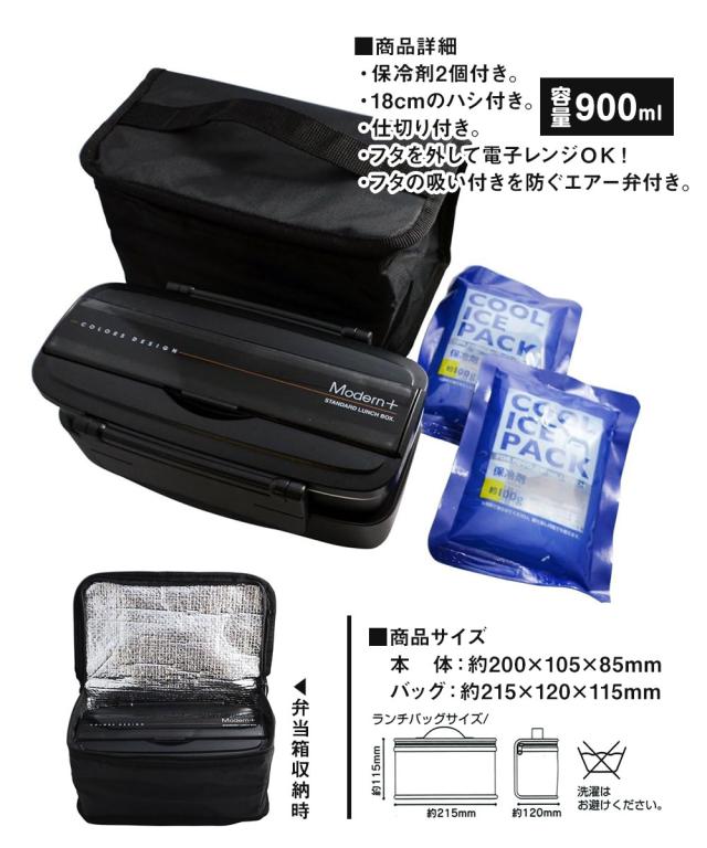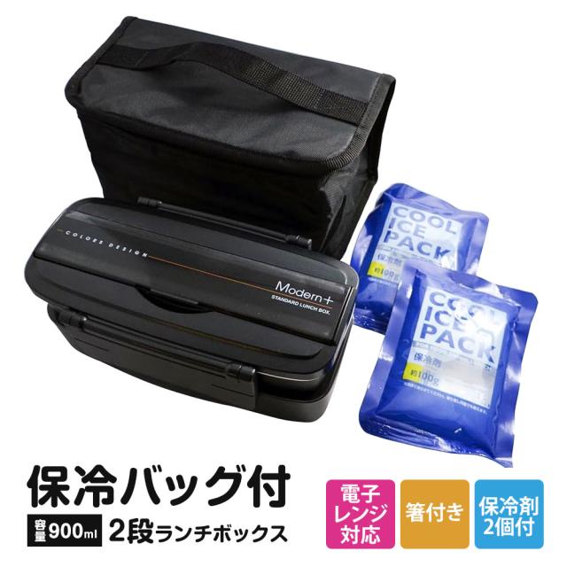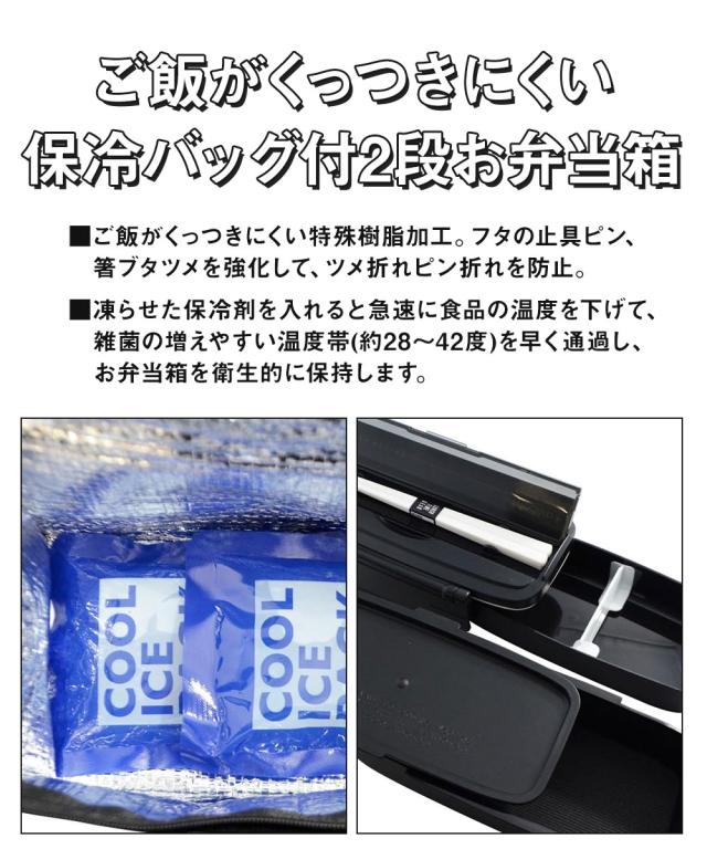 \今だけ10%OFF/ 弁当箱 900ml 箸付き 保冷剤付き 保冷バッグ付き くっつきにくい お弁当箱 弁当 二段 2段 ランチボックス 電子レンジ対応 男子 中学生 高校生 男性 メンズ 大人 大きめ ランチバック ブラック 黒 KCPOW5T