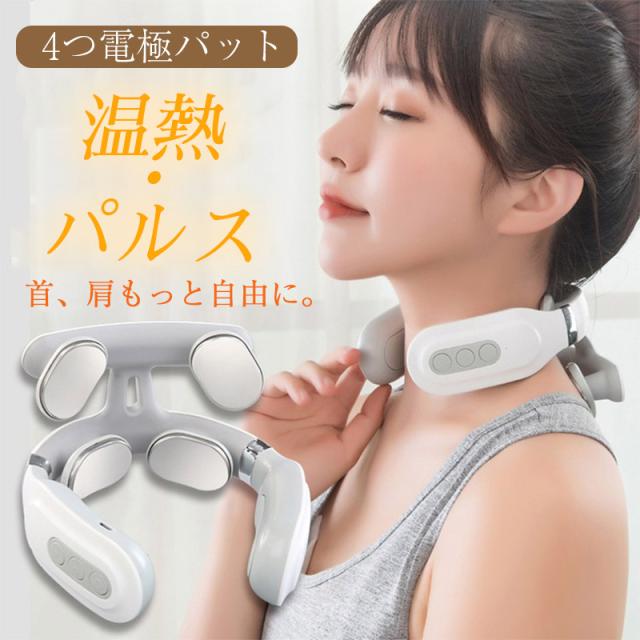 ネックマッサージャー 首マッサージ器 健康グッズ 小型 EMS低周波 温熱 筋膜リリース 首元 軽量 充電式 肩こり コリ改善 電熱 解消 敬老の日