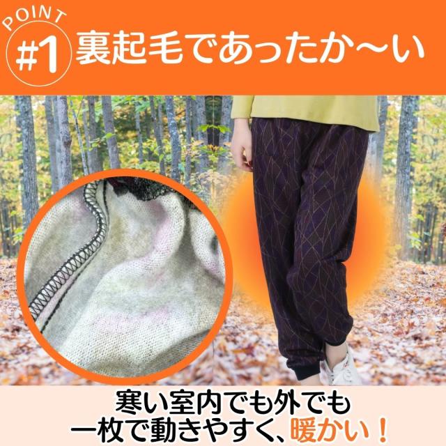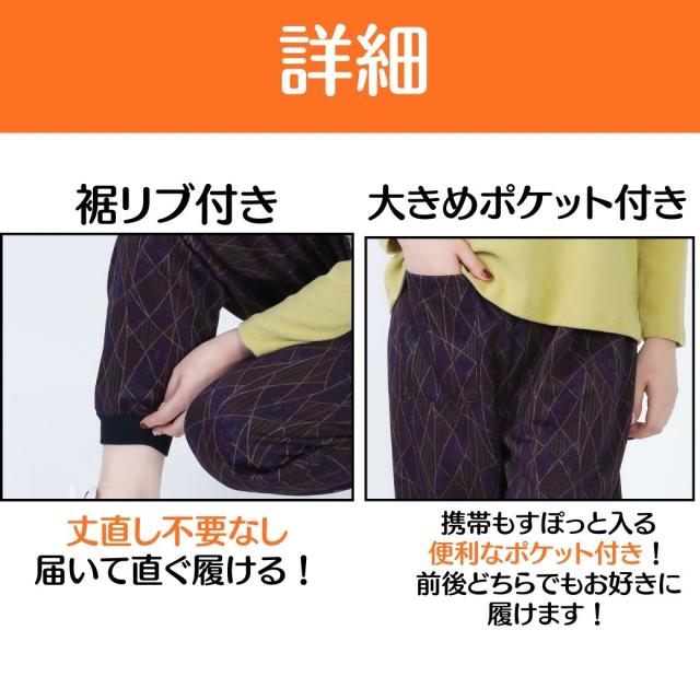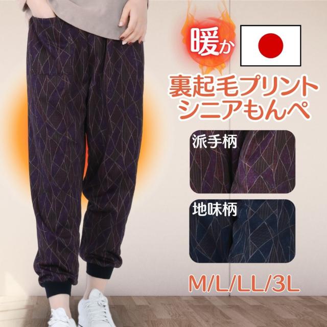 シニアファッション パンツ レディース ズボン 日本製 80代 70代 柔らか 裏起毛パンツレディ—ス 3L プリント もんぺ サルエルパンツ イージーパンツ ウエストゴム 人気 総ゴム 敬老の日