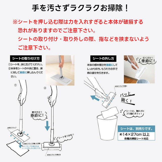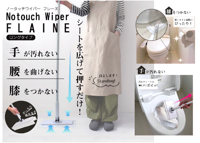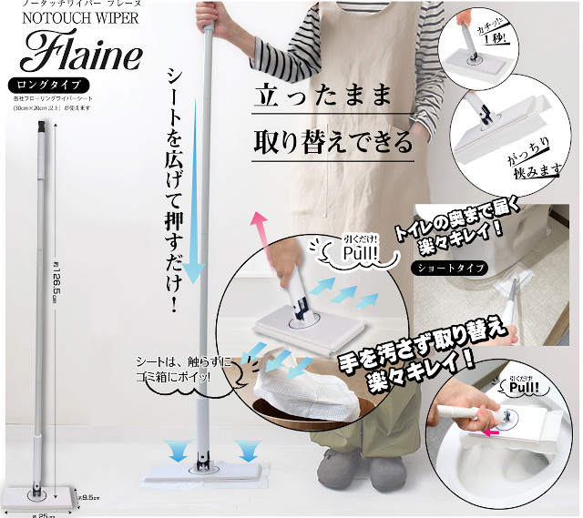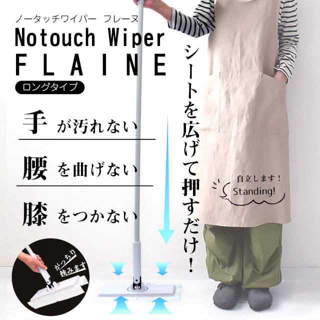 Notouch Wiper FLAINE ノータッチワイパー フレーヌ ロング 30859【トレードワン フロアワイパー フローリングワイパー タッチレスワイパー 本体 掃除ワイパー 手が汚れない 床掃除 大掃除 掃除用品 掃除グッズ 母の日 父の日 敬老の日 クリスマス xmas】
