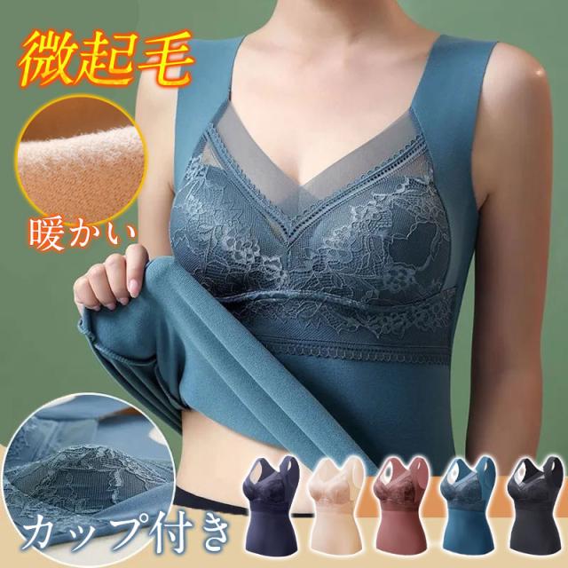 『2点ご購入で200円OFF』タンクトップ 裏起毛タンクトップ 暖かい 極暖 ナイトブラ ノンワイヤーブラ 冬対策 ブラトップ レース 美胸 保温 防寒 秋冬