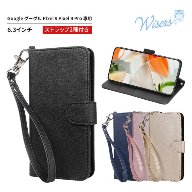 wisers Google Pixel 9 Pixel 9 Pro ケース 手帳型 スマホケース 対応 (全4色) ( カードホルダー / スタンド機能付き ) ストラップ 2種付き ( ハンドストラップ / ネックストラップ ) 2024年 新型
