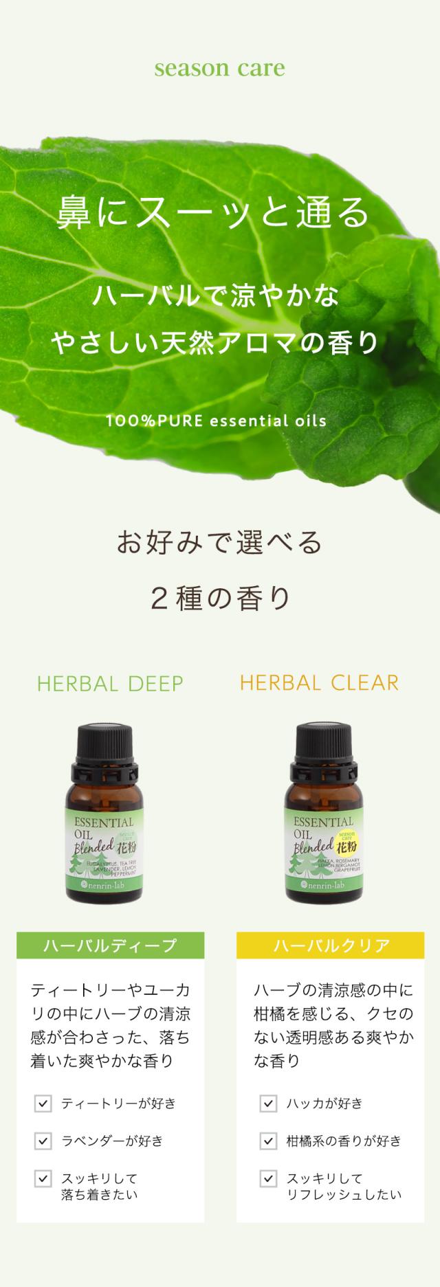 天然 精油 花粉対策ブレンドエッセンシャルオイル10mL 花粉 マスク アロマ アロマオイル リラックス 花粉症 対策 グッズ ハーバルディープ ハーバルクリア