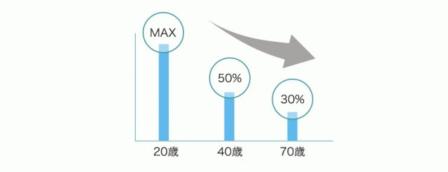 セラミドは年齢を重ねるにつれ減少し、40代ではなんと20代の半分まで減ってしまう成分です。不足すると若々しいハリやツヤを感じなくなり、老け顔になりやすいといった加齢トラブルを引き起こす原因になるといわれています。さらに加齢以外にストレス、紫外線、睡眠不足など、セラミドが減る要因は他にも。だからこそセラミドは、敏感なゆらぎ肌の方以外にも、年齢サインでお悩みの方にも欠かせない成分といえます。