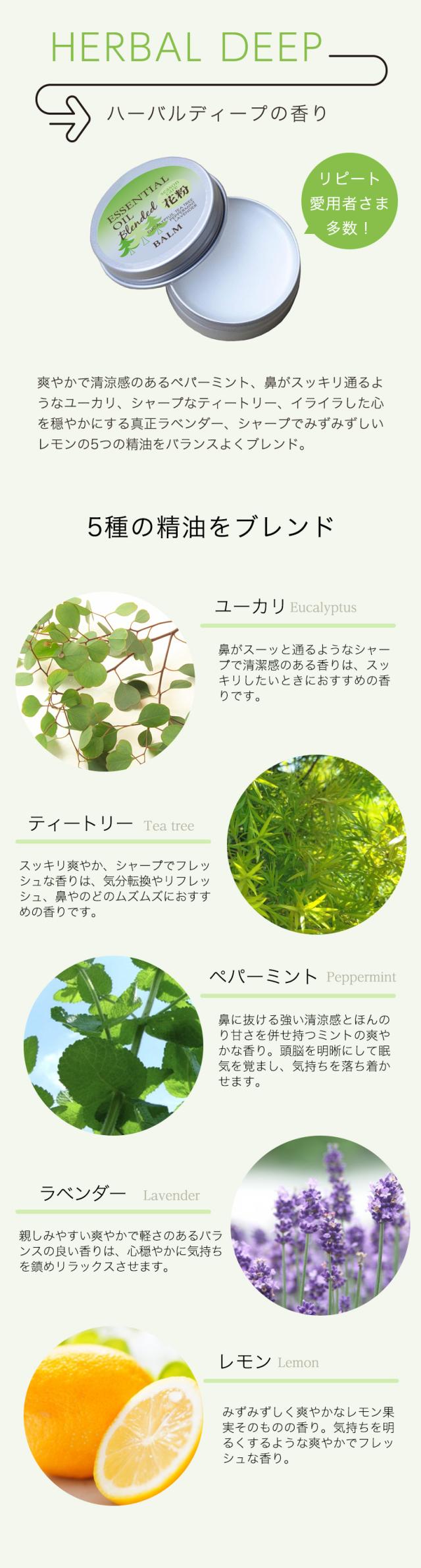 ■全成分:ハーバルディープ/ワセリン、ホホバ種子油、ミツロウ、ラベンダー油、ティーツリー葉油、ユーカリ葉油、レモン果皮油、ハッカ葉油、シア脂、スクワラン、グリチルレチン酸ステアリル