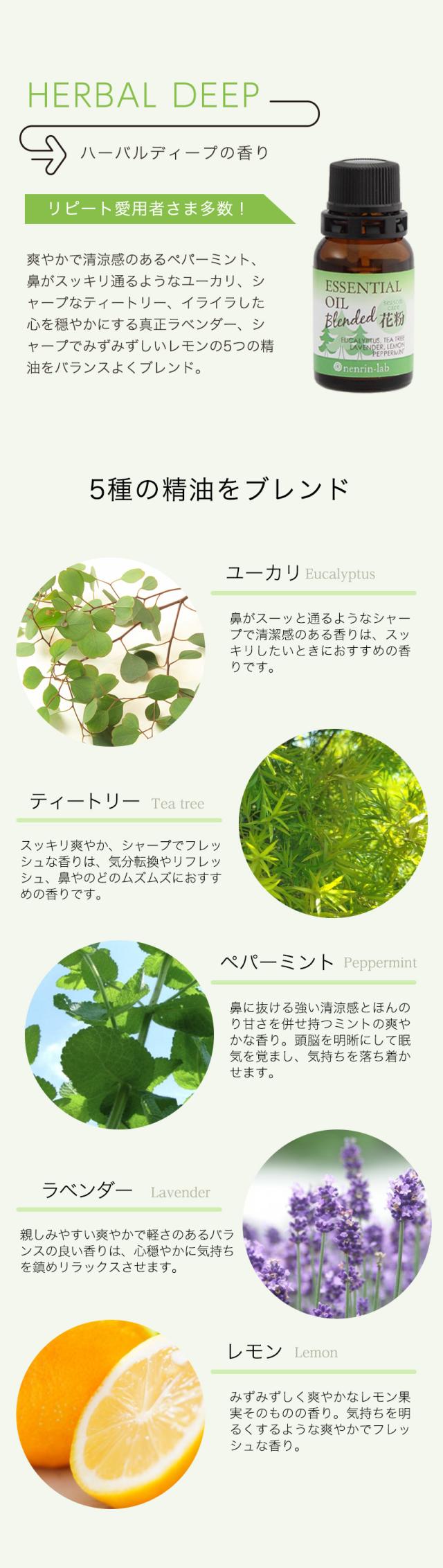 ■精油成分:ハーバルディープ/真正ラベンダー精油、ユーカリ精油、ティーツリー精油、レモン精油、ペパーミント精油