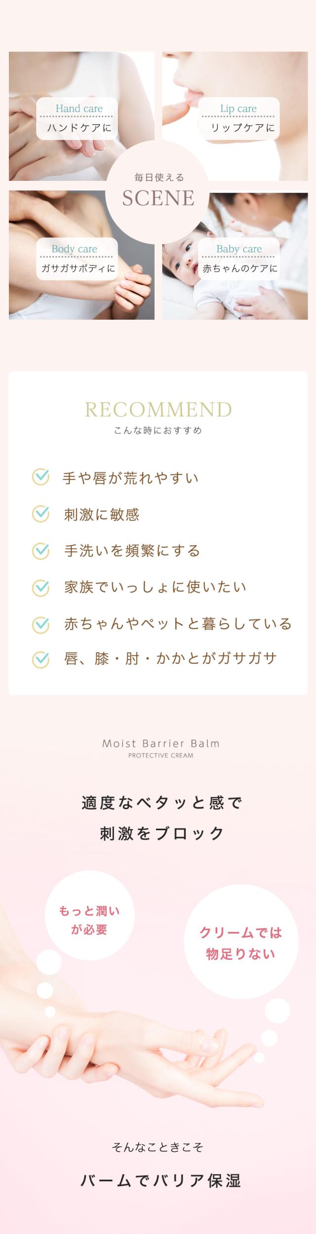 手洗い&水仕事に強く、手荒れや乾燥ボディのポイントケア、唇の保湿、赤ちゃんのケア等、マルチに使えます。