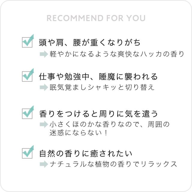 仕事・家事・勉強でお疲れのボディのポイントケアや、眠気覚ましのリフレッシュアイテムに。