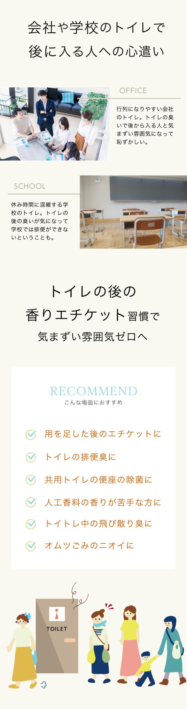 用を足した後のエチケットに、飛び散り対策に、トイレのアンモニア臭に、日々のトイレ掃除に、人工香料の香りが苦手な方に、お子様がいるご家庭に、オムツごみのニオイにも。手軽にサッと消臭!