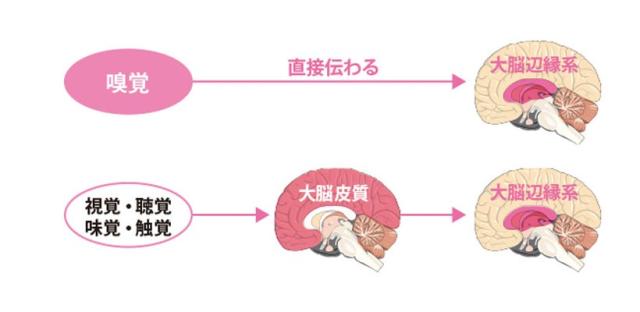 視覚・聴覚・嗅覚・味覚・触覚という五感の中で、唯一嗅覚だけが感情と記憶に関係する大脳辺縁系に直結しています。嗅覚で感じた香りは、ダイレクトに脳に伝わり、直接心や体に作用します。昼用と夜用のブレンドエッセンシャルオイルは、この作用を利用した香りの商品です。