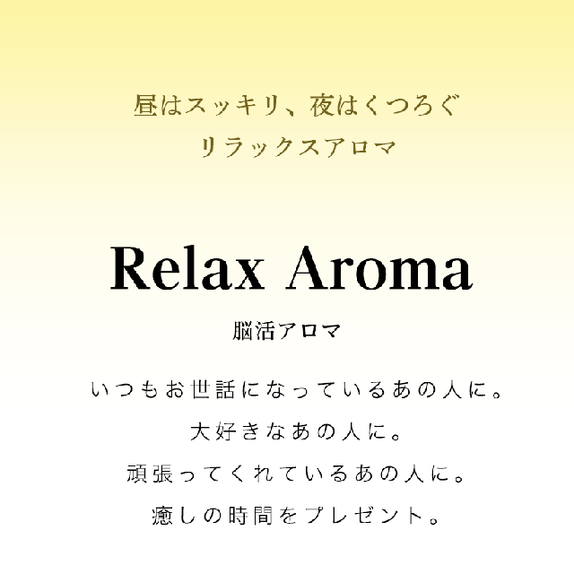 ストレスフルな毎日を頑張る大切な人に、ぐっすり休んでもらいたい。 心安らぐ天然アロマの香りでリラックスタイムをプレゼント。