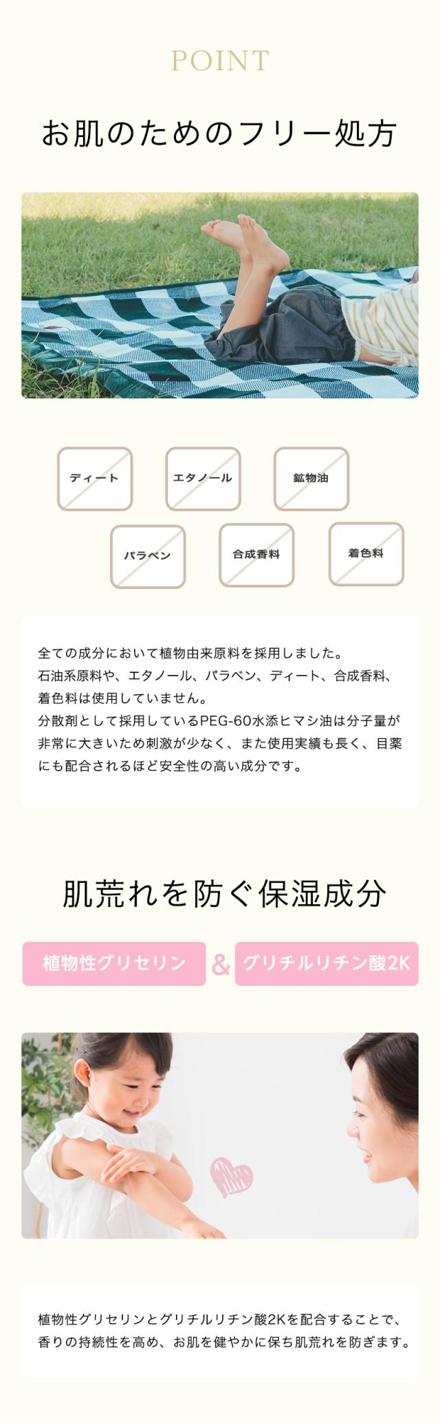 ディート使用の虫除けスプレーではありませんので、安心して子供にも使えます。