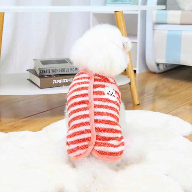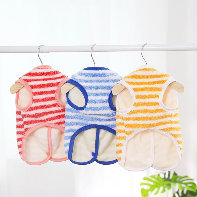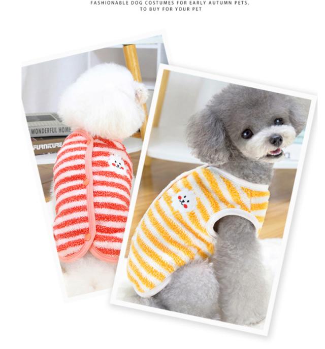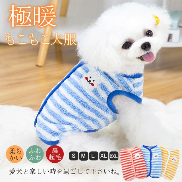 犬 服 犬服 ドッグウェア 背中開き ベスト ストライプ柄 秋冬 暖かい もこもこ トイプードル 超小型犬 中型犬 ペット用 柔ら