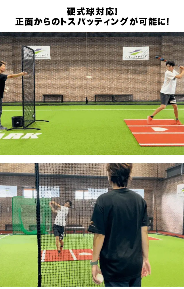 特徴:硬式球対応!正面からのトスバッティングが可能に!