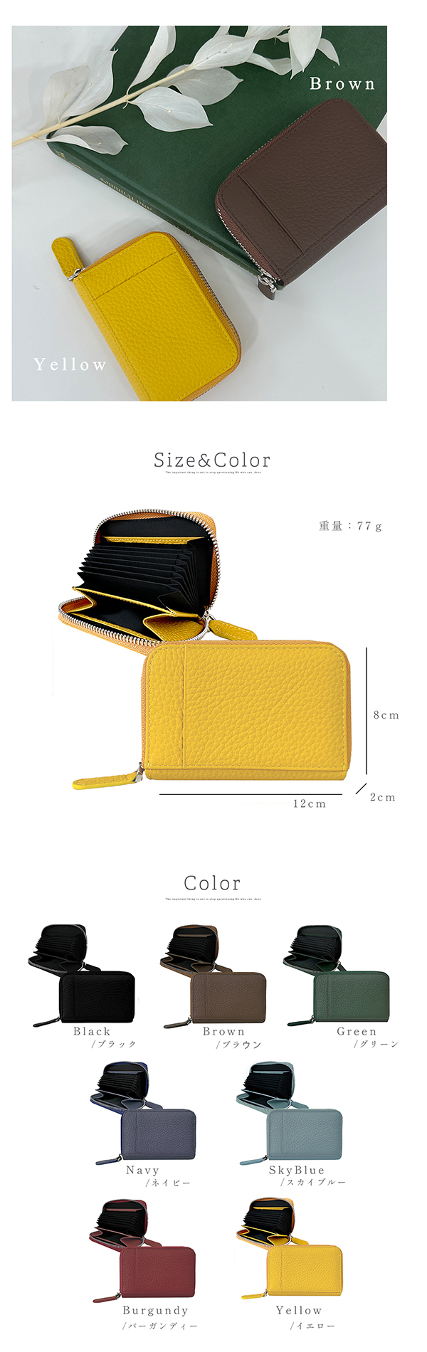 縦8cm×横12cm×厚み2cm 重さ77g 素材:本革