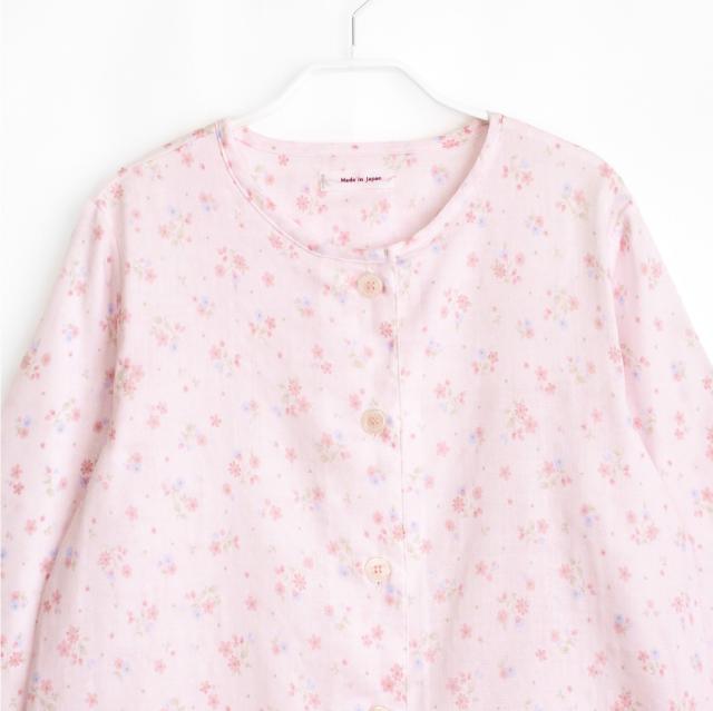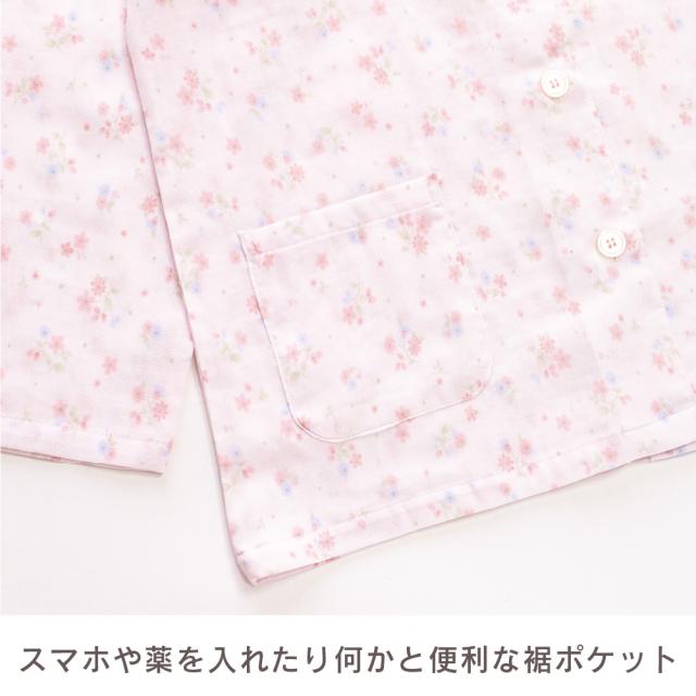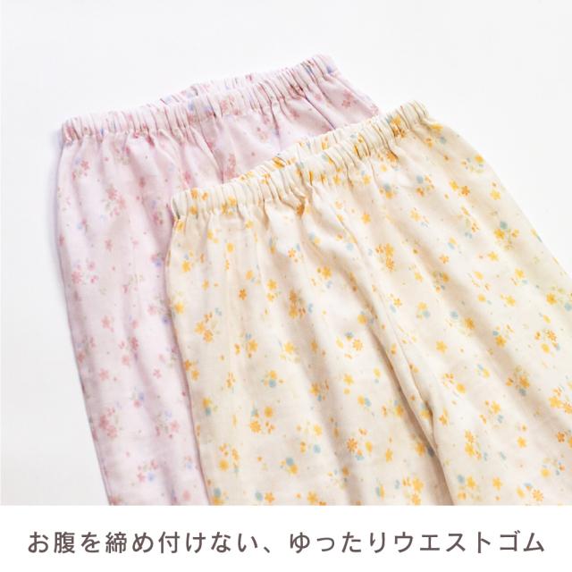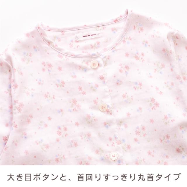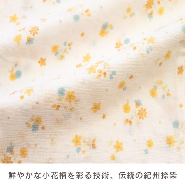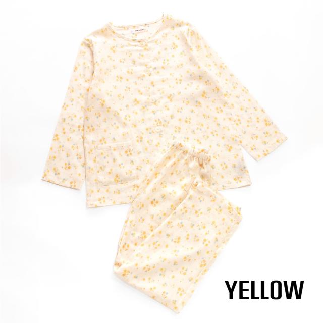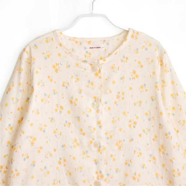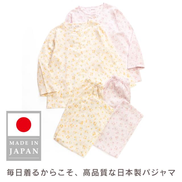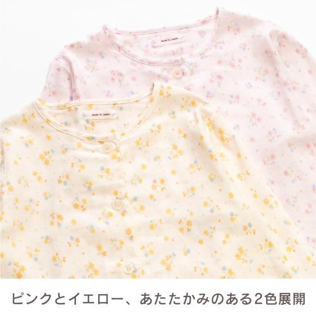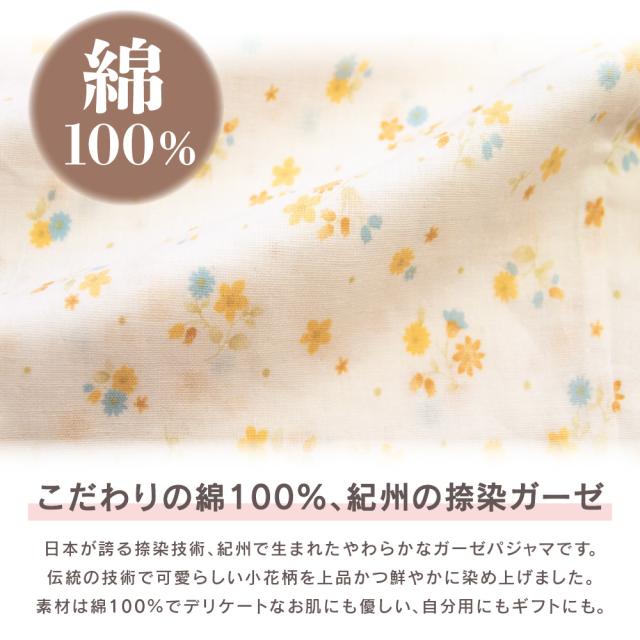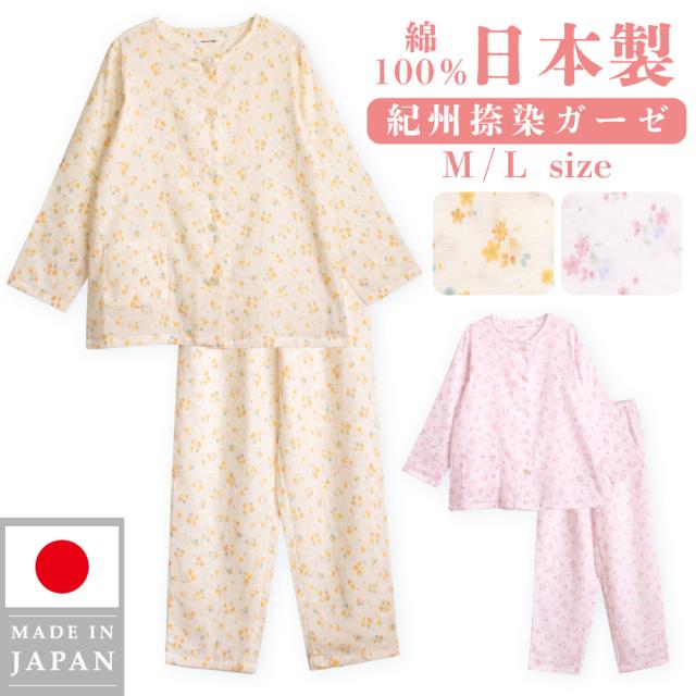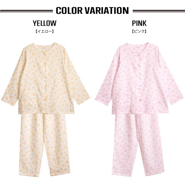 レディース 綿100% 日本製 パジャマ 紀州捺染 ガーゼ 国産 高品質 長袖 秋 冬 前開き ボタン 小花柄 イエロー ピンク M L ギフト プレゼント 母の日 敬老の日 旅行 入院 来客用