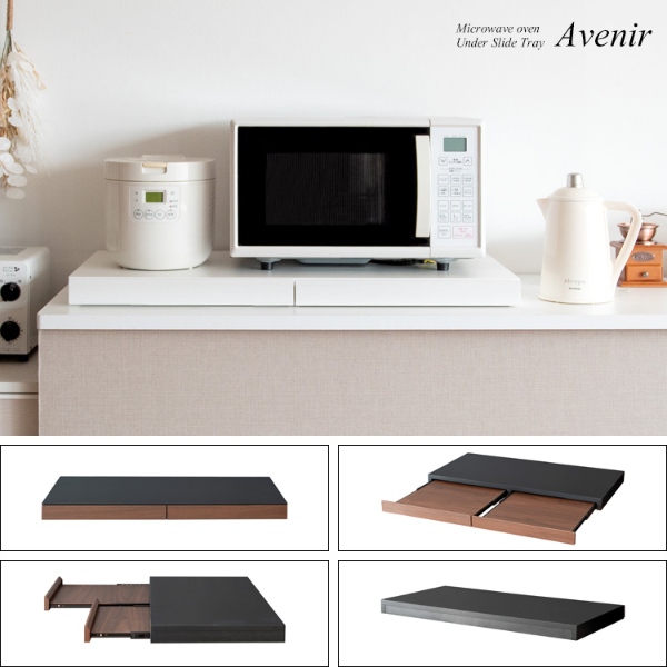 レンジや家電の下に置くだけで作業スペースが作れるレンジ下トレー『Avenir(アベニール)』。二連のトレーにそれぞれ調理器具や料理がサッと置けて家事効率アップ間違いなし。