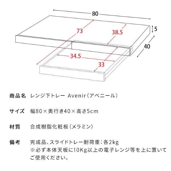商品名 レンジ下トレー Avenir(アベニール)