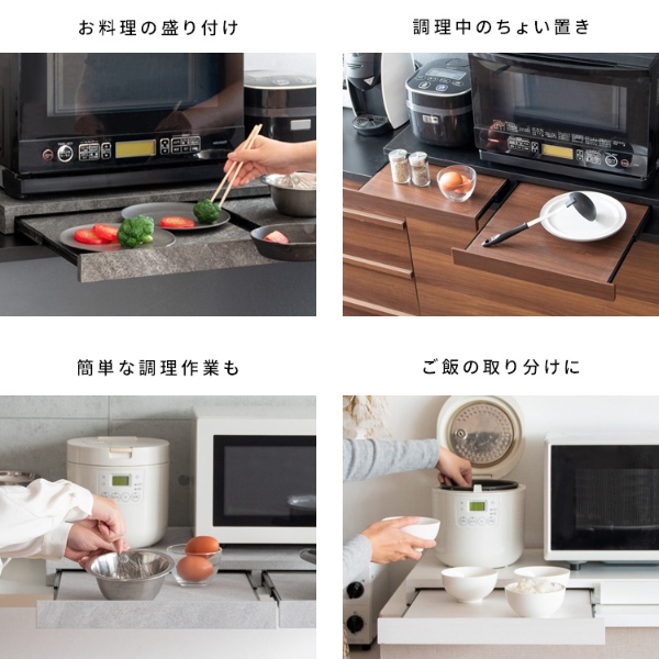 レンジ下トレー オーブンレンジ置き レンジラック キッチンキャビネット キッチンラック レンジボードスライドトレー スライドテーブル キッチン収納 引き出し 台所収納 炊飯器ラック 作業スペース キッチンテーブル 完成品 組立不要