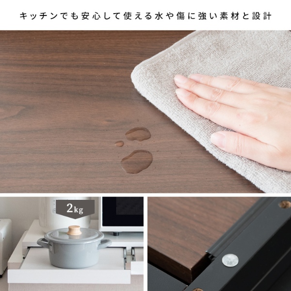 必要な時だけ引き出せる便利なスライドトレーで、使わないときも邪魔にならず、手狭なキッチンのお家やワンルームなど、一人暮らしの方にもオススメです。