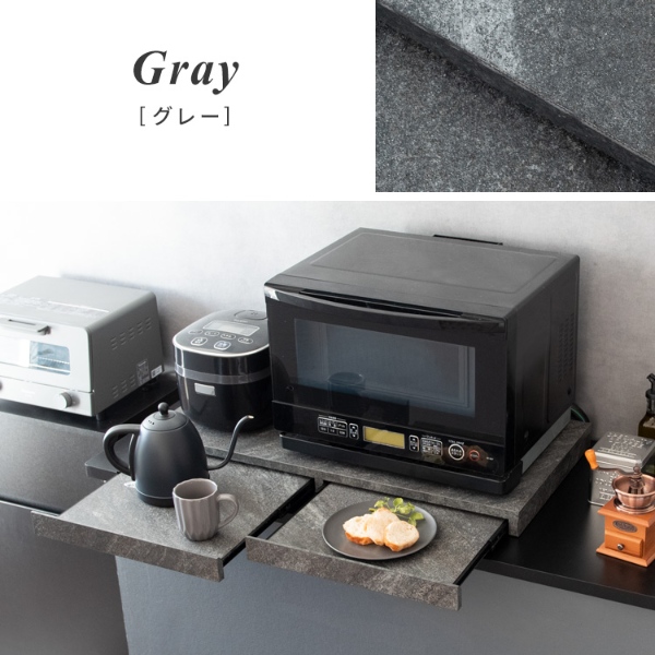 レンジ下 引き出し レンジ下トレー スライドテーブル 炊飯器 収納 レンジ置き スライドトレー Avenir アベニール 大理石柄 TY-002 グレー