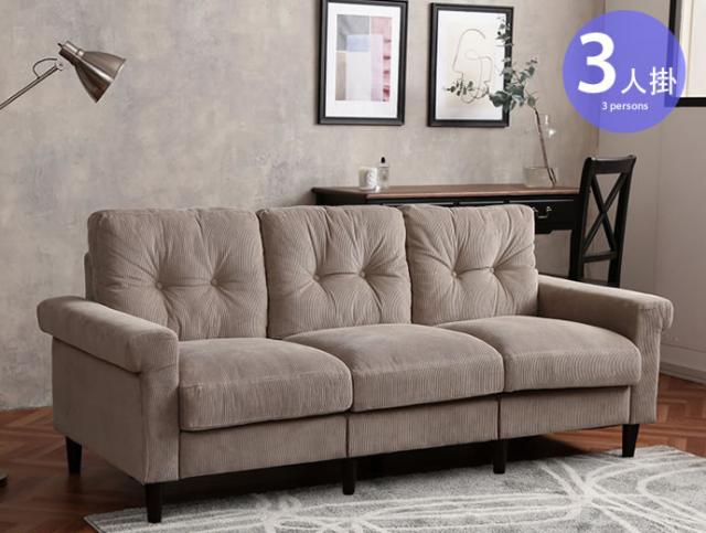 3人掛けソファ 1台単品 SHABY グレー 幅185cm 布張り ローソファーにも 三人掛け コーデュロイソファ 北欧インテリア