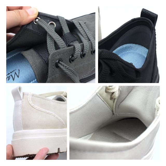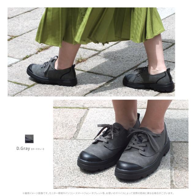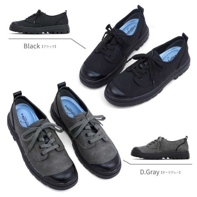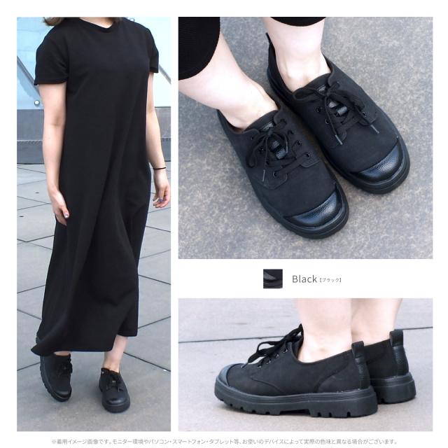 キャンバス調のPU素材を使ったカジュアル感につま先、