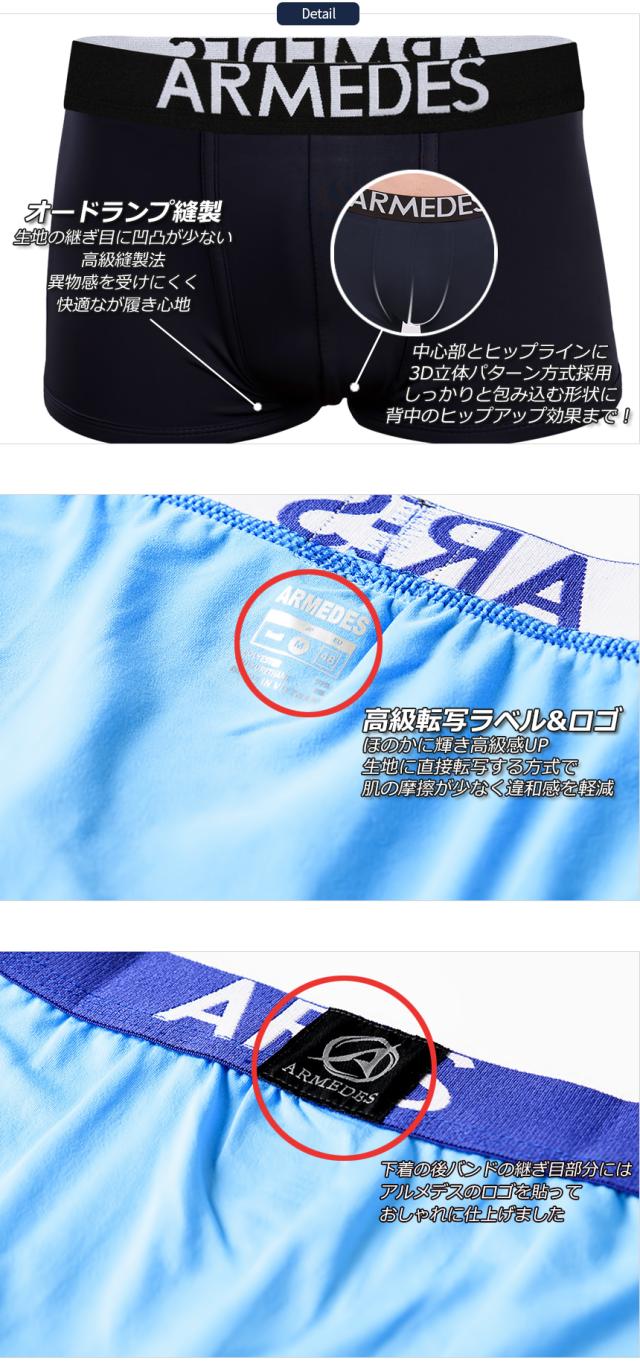 送料無料 ARMEDES アルメデス アンダーウェア ボクサーパンツ カール防止 吸汗速乾 速乾性抜群 ドライ素材 メンズ 全13色 M-3XL AR-04