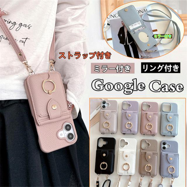 google pixel7a ケース ショルダー ケース ミラー付き ストラップ付き グーグルピクセル7 pixel10 pixel9 pixel8 pixel7 pixel6a 携帯カバー ピクセル7a 耐衝撃 レザー リング付き スタンド googleピクセル7a 5g ケース スマホショルダー 大人可愛い おしゃれ 鏡 かわいい