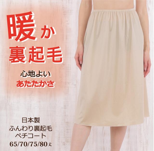 裏起毛 ふんわり 暖か ペチコート 65丈/70丈/75丈/80丈 日本製【暖かい 防寒 冷え性対策 秋冬 冬 ポカポカ マキシ丈 ワンピース 大きいサイズ ロング 保温 マタニティ】
