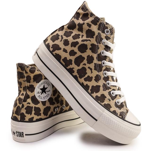ユニセックス 厚底スニーカー レパード柄 タウンユース カジュアル アメカジ アニマル柄 ベージュ レースアップ かわいい モード系 ハイカット プレゼント ギフト