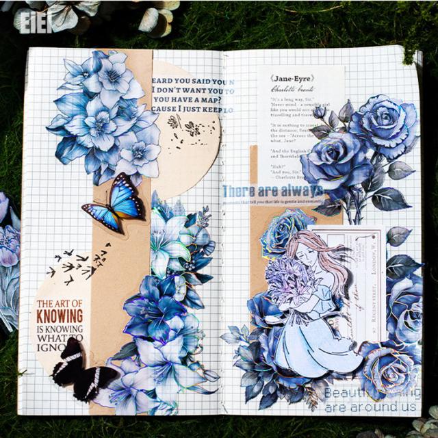 オーロラ箔押し 大きめ 立体 銀箔押し 花柄 シール コラージュ素材 ローズ 薔薇 紫陽花 バラ 蘭 あじさい アジサイ ユリ 百合 花瓶 チューリップ 神秘 幻想 クリアシール PET シール 耐水シール 箔押し ステッカー 海外シール デコレーション スマホカバー 手帳 DIY