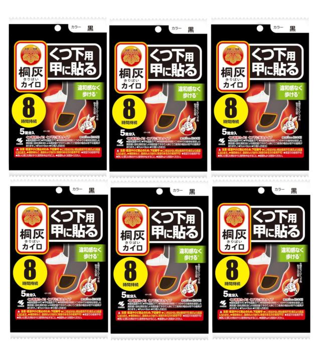 小林製薬 桐灰カイロ くつ下用 甲に貼る 黒 5足分入×6【6個セット】送料無料 靴 足 カイロ 指先 冷え