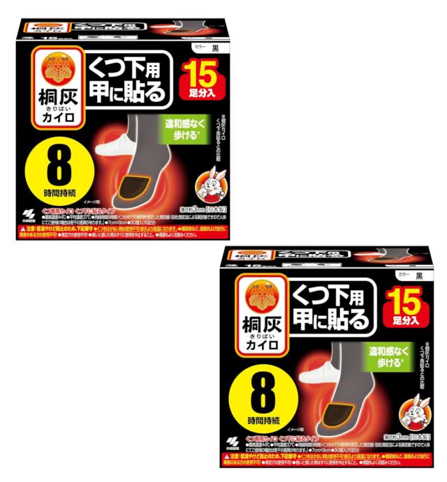 小林製薬 桐灰カイロ くつ下用 甲に貼る 黒 15足分入×2【2個セット】送料無料 靴 足 カイロ 指先 冷え