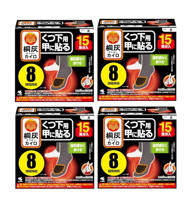 小林製薬 桐灰カイロ くつ下用 甲に貼る 黒 15足分入×4【4個セット】送料無料 靴 足 カイロ 指先 冷え
