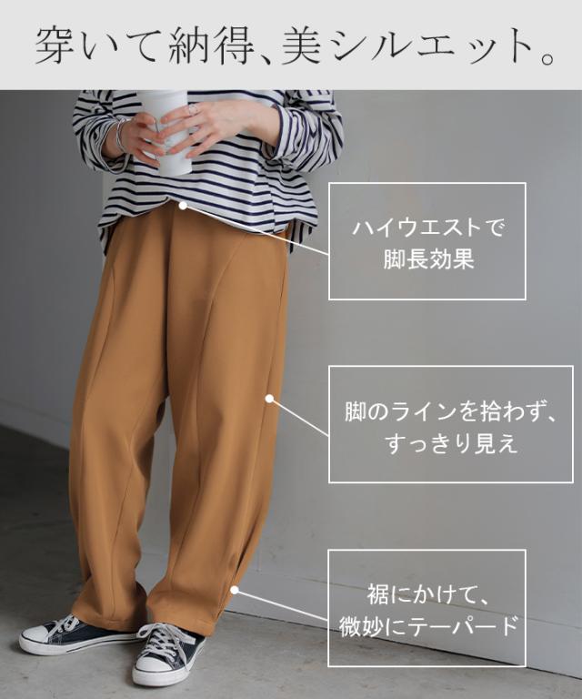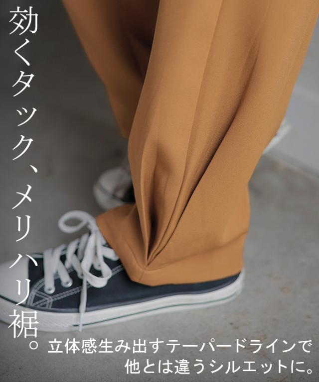 パンツ ワイド カーブパンツ レディース タック タックパンツ テーパード ワイドパンツ ロング ロングパンツ 体型カバー ボトムス ボトム ストレート ズボン ゆったり コクーン ハイウエスト ストレッチ 美脚 大きいサイズ 黒 カーキ 春 夏 HUG.U