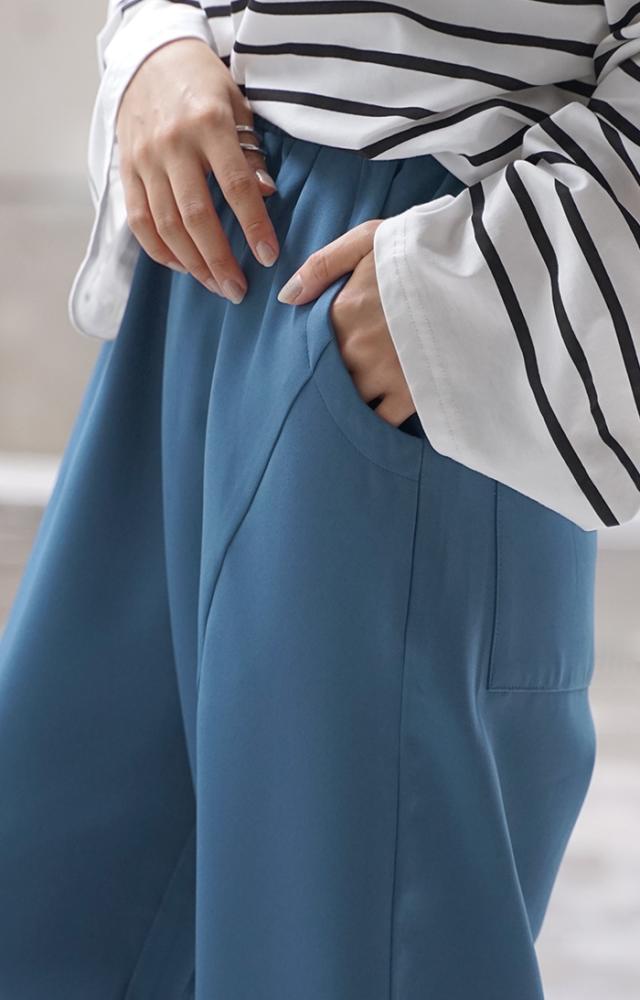 裾に向かって細くなるシルエットは足首をキュッと細く見せてくれます。