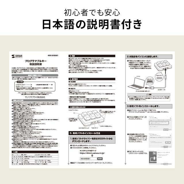 コピー&ペーストでご確認くださいhttps://www.sanwa.co.jp/direct/pdf/index.asp?sku=400-SKB081