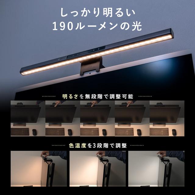 ⇒ご購入の前にご確認下さいセンサーでON/OFFができるデスクライト。最大190ルーメンの明るさで、USB電源のモニター賭式LEDライト。湾曲モニターにも設置できるバーライト。【WEB限定商品】